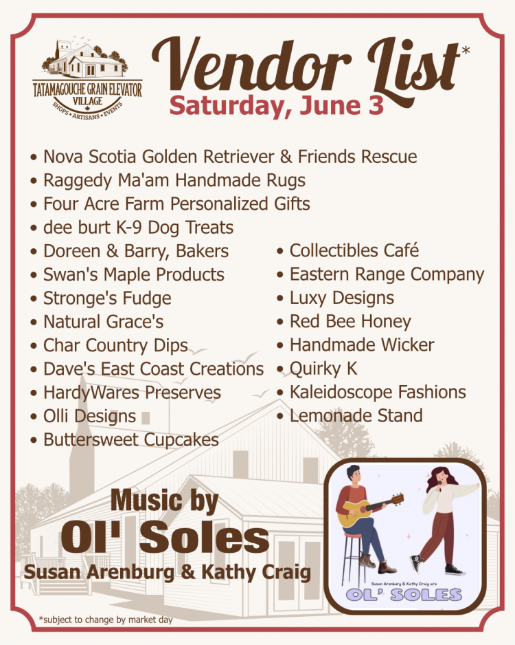 Join us this Saturday, June 3rd from 9am-1:30pm for a jam-packed market!! Browse one-of-a-kind handmade crafts from our local vendors, have a quick snack & drink, and enjoy some amazing entertainment by Ol' Soles (Susan Arenburg & Kathy Craig)!
